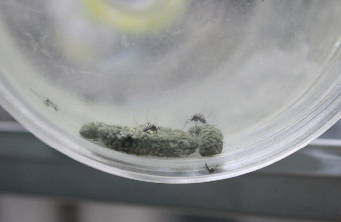 图2:蚊子驻留在被绿僵菌侵染的昆虫尸体上