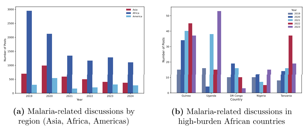 该研究于 2019 年 1 月至 2024 年 8 月期间在新浪微博收集到 81010 条疟疾相关帖子,分析发现网民对疟疾的关注呈事件驱动特征,在我国对非卫生援助、公共卫生事件及世界 / 中国疟疾日前后达到高峰,且负面事件引发的参与时长约为正面事件的 1.5 倍;区域讨论上,涉非内容虽略有下降但仍占年度区域特定帖子的 60% 以上,而涉亚、美话题较分散;不同类型账号讨论重点各异,官方卫生类账号侧重疟疾预防但发帖量少,个人账号更关注治疗与健康经历分享,非官方卫生类账号话题分布均衡且重视疫苗与科研,组织类账号则提供疟疾防控机构信息。